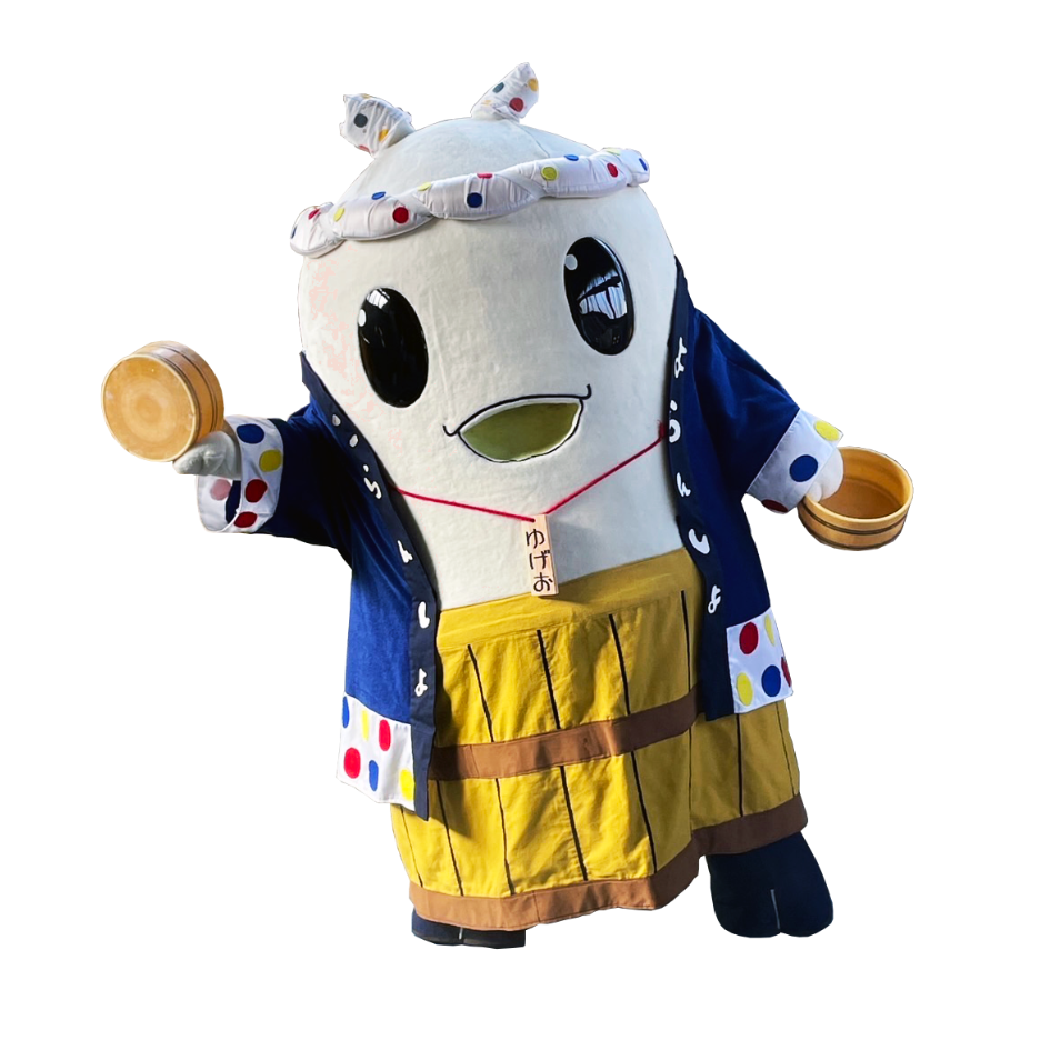 飯坂町公式マスコットキャラクターの「ゆげお」ゆげ~飯坂名物ラヂウム玉子の妖精ゆげよ。温泉の湯気と「YOU GET ONSEN」の頭文字が名前の由来ゆげ。当日はみんなに会えるのを楽しみにしてるゆげよ~。